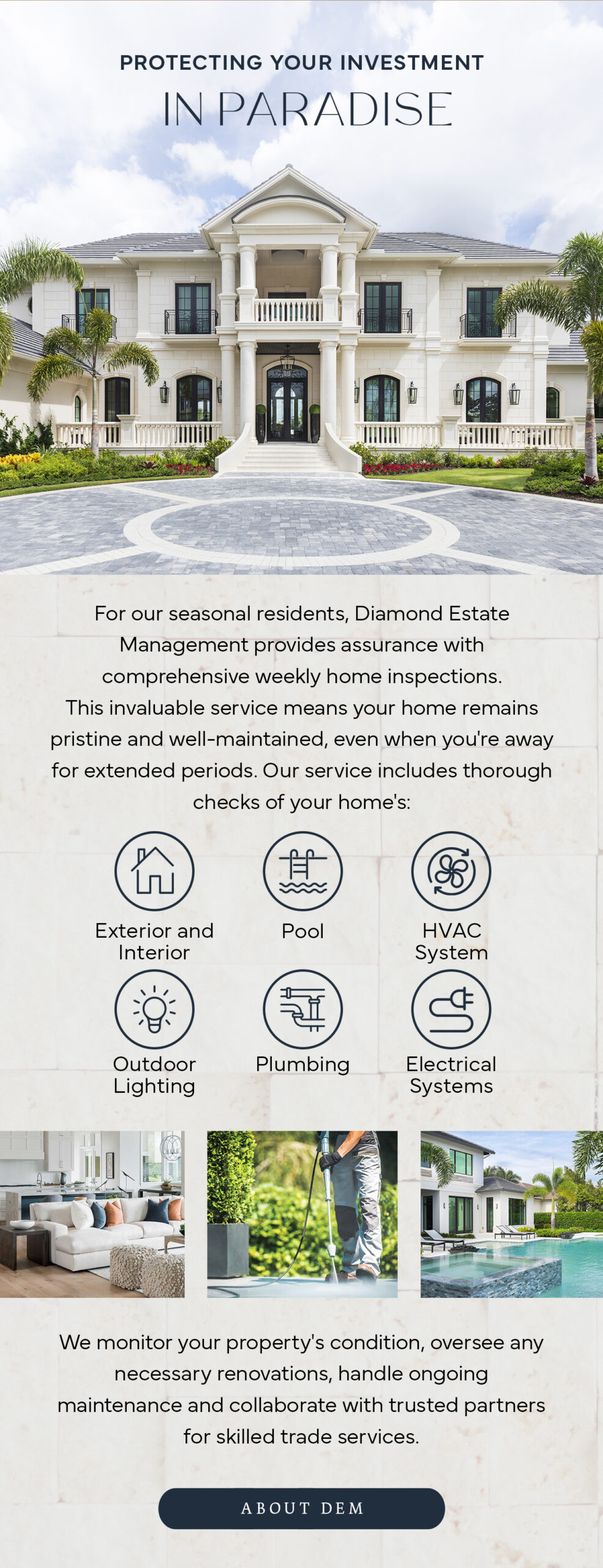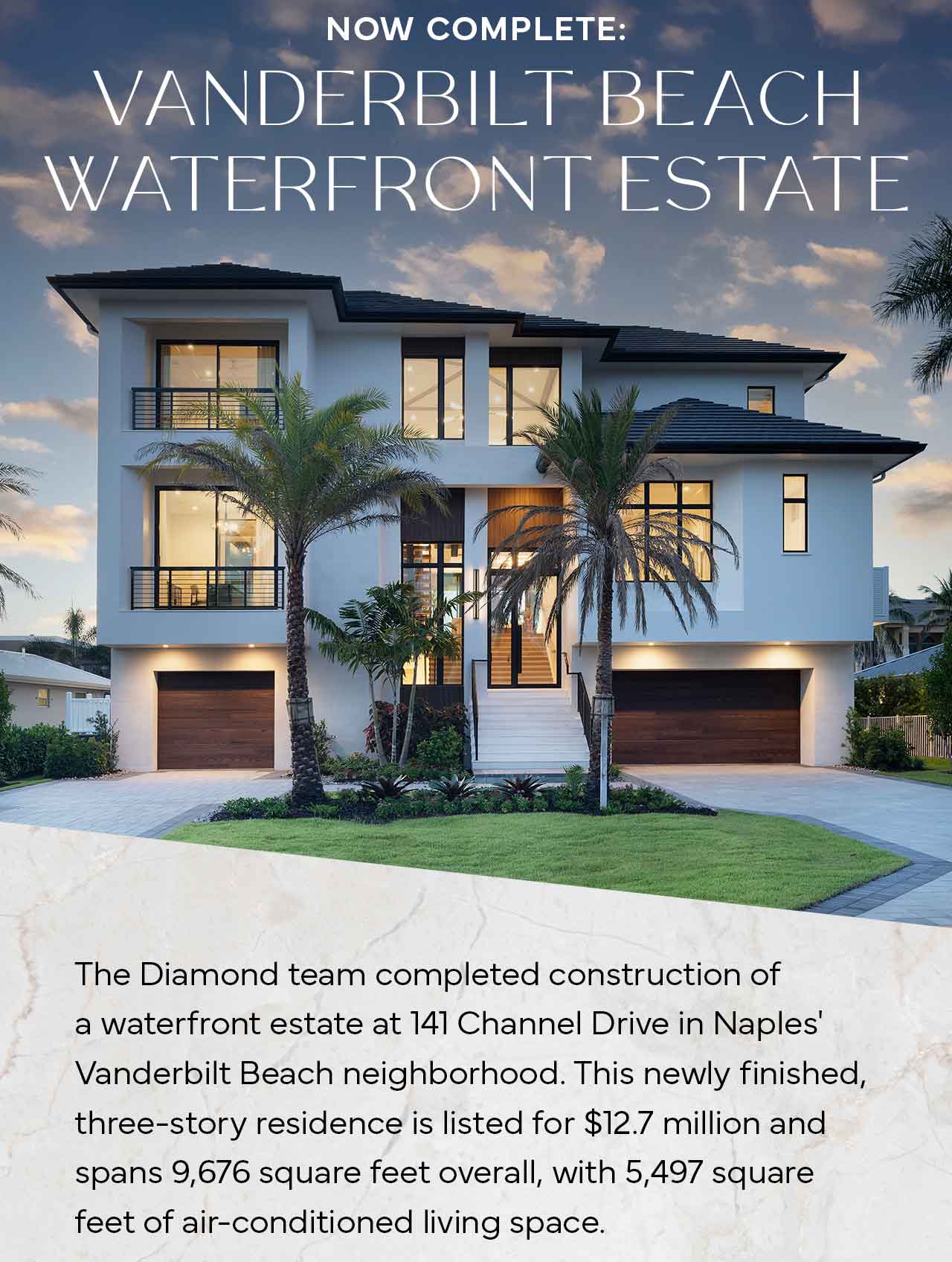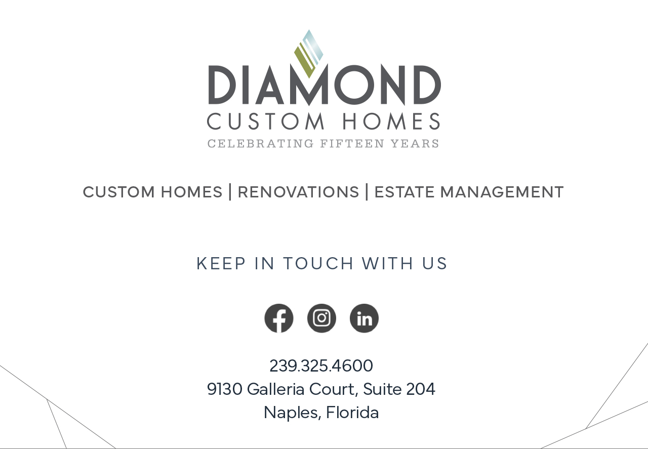 Dedicated to providing the highest quality service and attention to detail, Diamond Custom Homes builds luxury estates, remodels and offers estate management services to Southwest Florida. We utilize state-of-the-art technology and building techniques. Our guarantee is to always use the best practices, as well as only the highest quality materials on every project we endeavor. With a focus on open communication throughout the entirety of the building process, we create memorable homes and lifelong relationships.