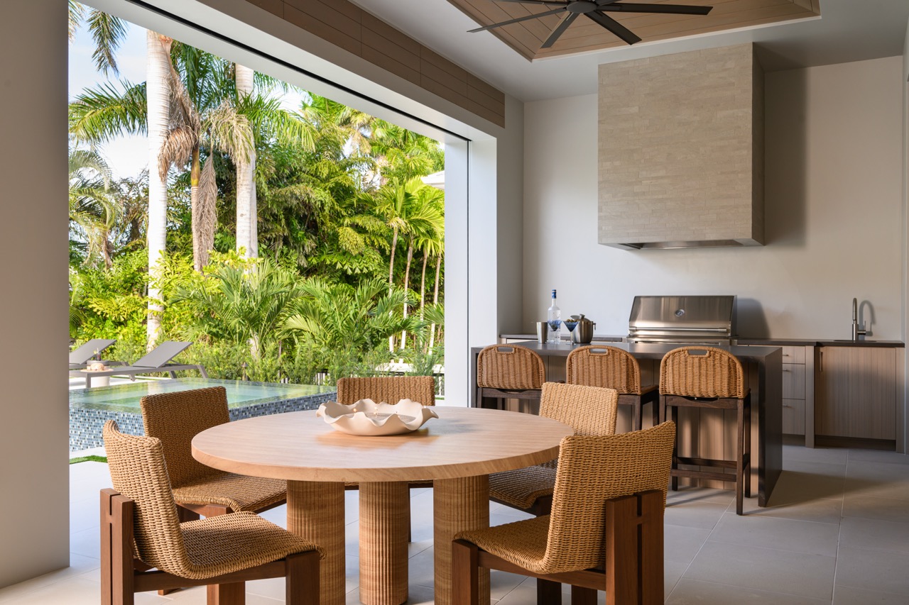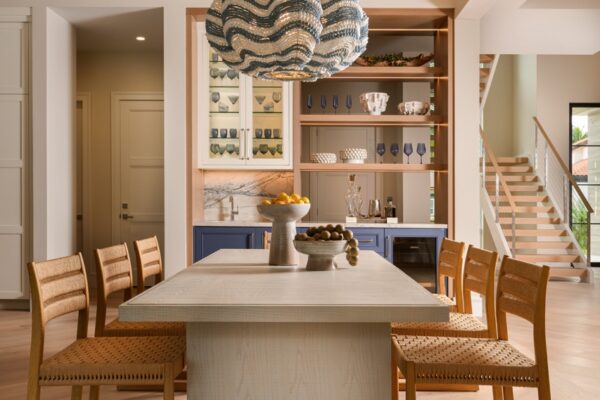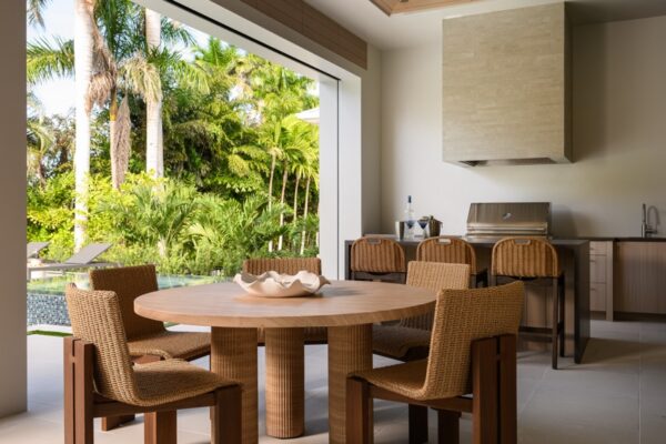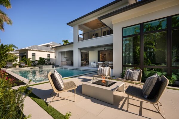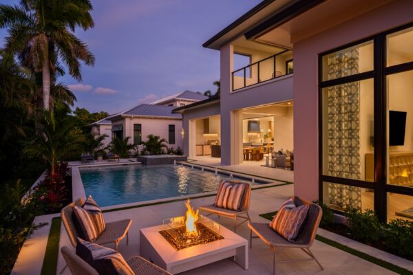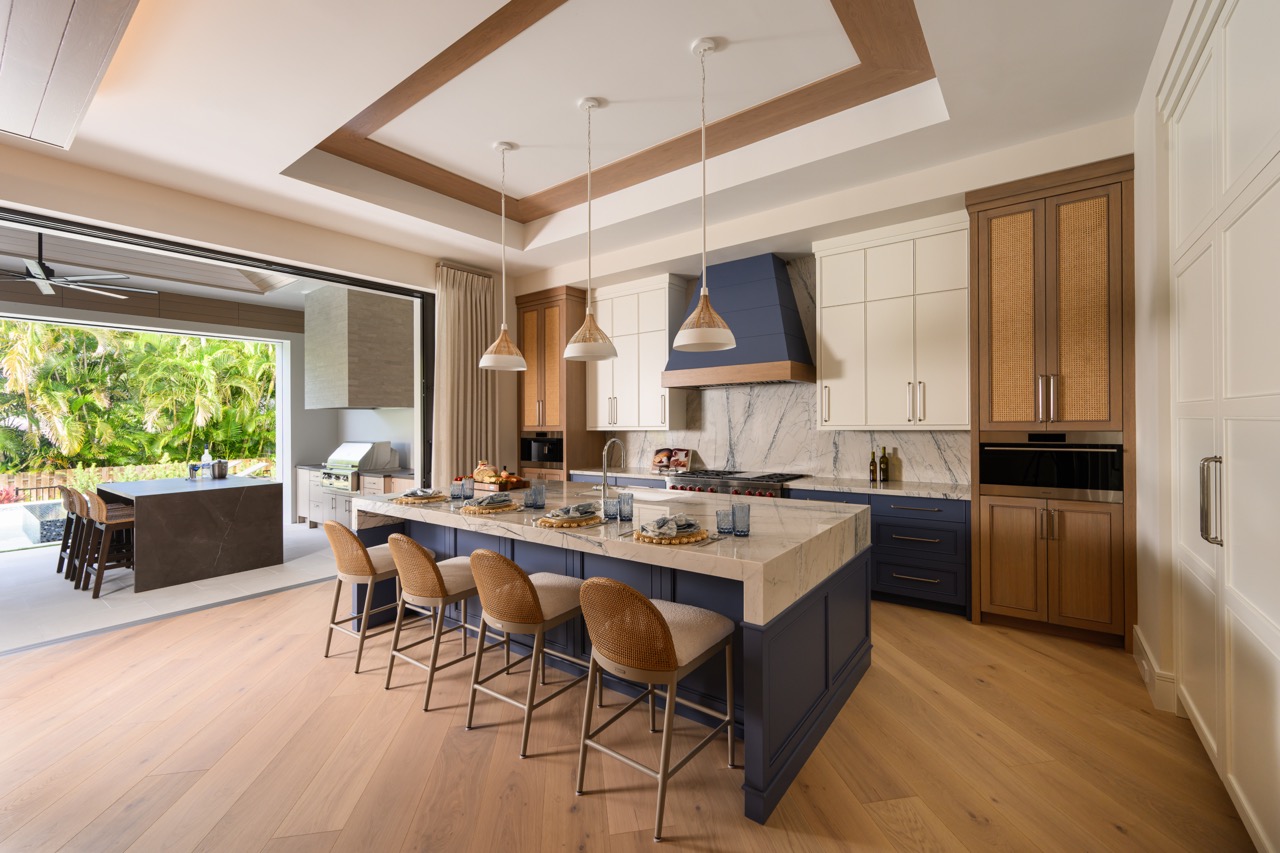 Located in The Moorings, this 5,045 square-foot estate will feature a coastal, modern design with architecture by Karen Velasco-Carter of Diamond Custom Homes and interior design by EDGE. The inside of the home will be light, open and airy with a mix of light-stained white oak wood, stone porcelain tile, rattan and cane. The exterior will include a metal roof, stone cladding, black detailing and a 3-car garage with glass panel doors.