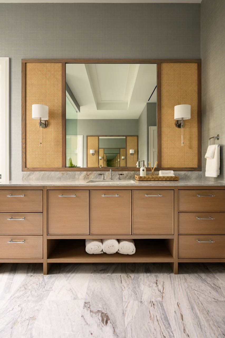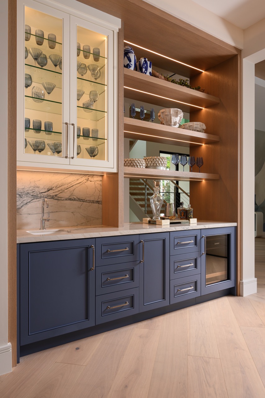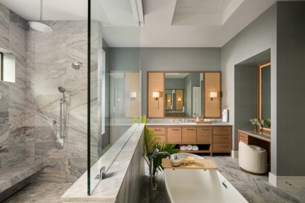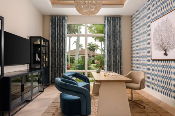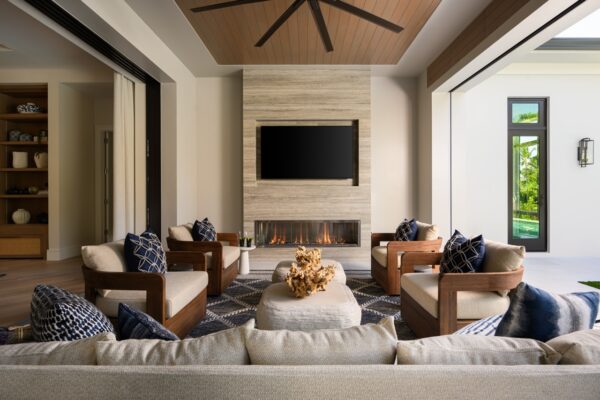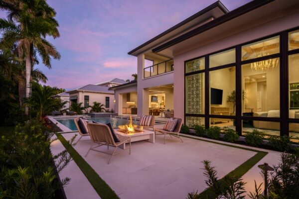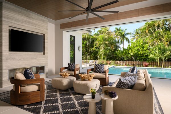 Located in The Moorings, this 5,045 square-foot estate will feature a coastal, modern design with architecture by Karen Velasco-Carter of Diamond Custom Homes and interior design by EDGE. The inside of the home will be light, open and airy with a mix of light-stained white oak wood, stone porcelain tile, rattan and cane. The exterior will include a metal roof, stone cladding, black detailing and a 3-car garage with glass panel doors.