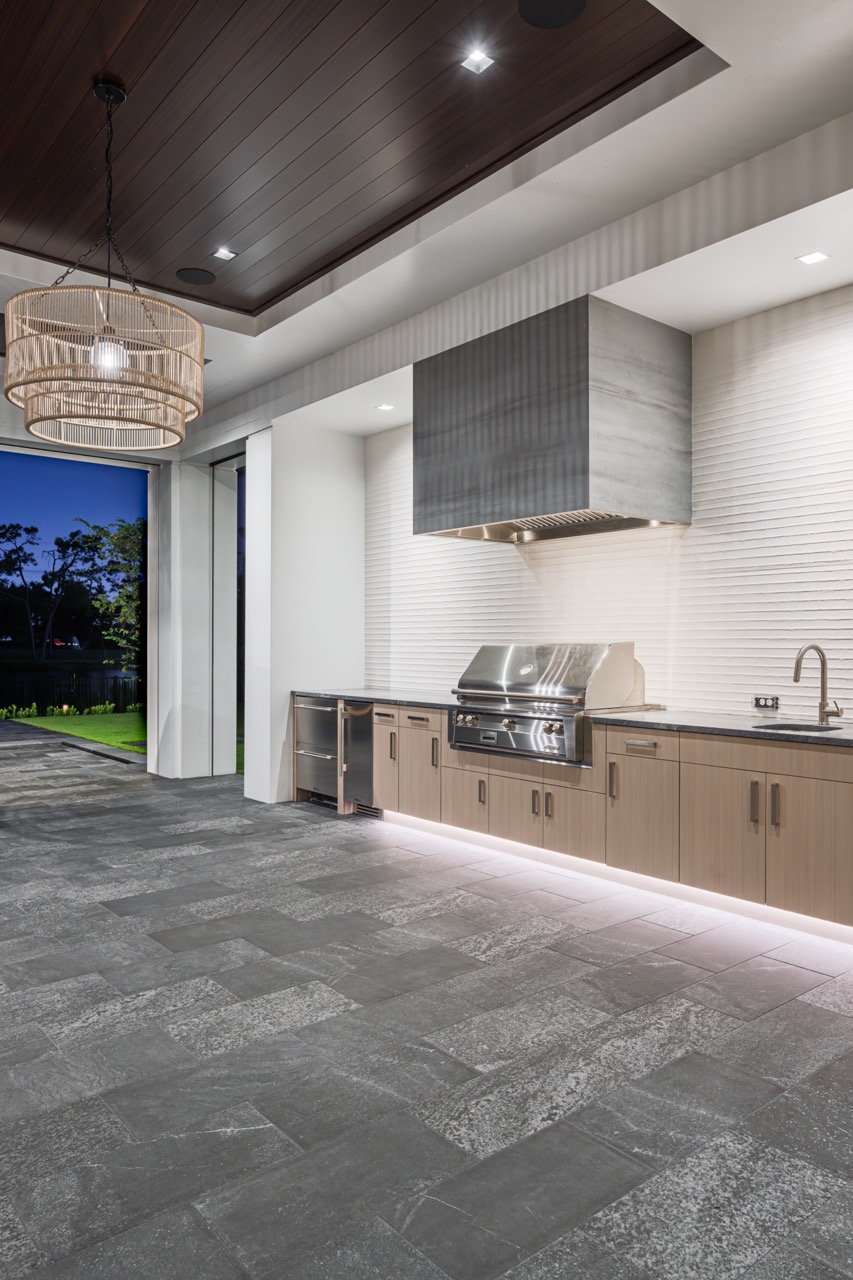 - Outdoor living features including a pool complex with a spa, fireplace, kitchen and bar